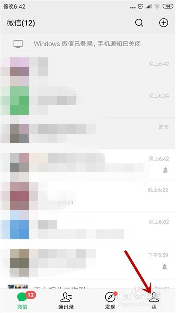 接下往来来往找到语音文件,在微信里点击导航栏里的【我】。