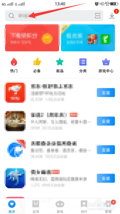 搜刮栏点击并输入游戏名,适配成果点击安装;