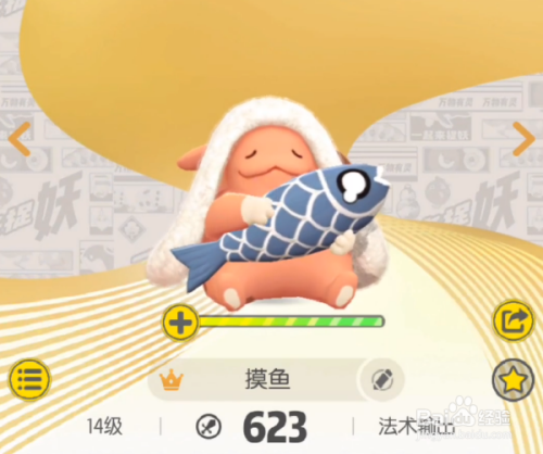 还有一个摸鱼,我们获得摸鱼的方式也是经由过程我们在游戏中捕获获得的哦。还有一个大若智鱼!