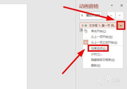 还可以在这里有更多的设置,来加强PPT的结果,为你的PPT加分。点击右侧的小三角,鄙人拉菜单中选择”结果选项“。