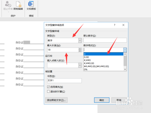 进入设置页面之后我们设置文字型窗体的类型为数字,最大长度为18,设置数字格局为不保留小数。