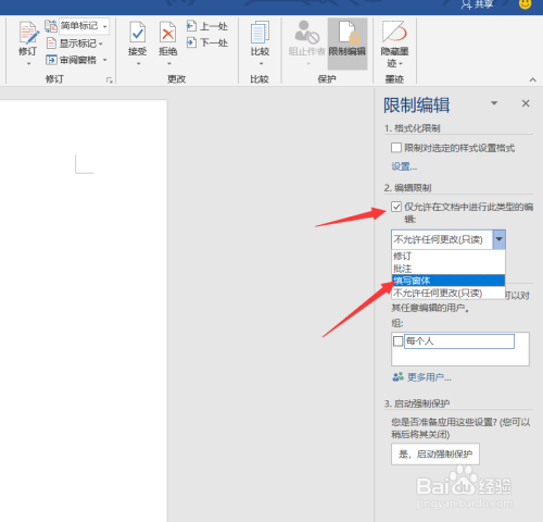 进入限制编纂页面之后,我们选择第2个编纂限制,然后选择编纂限制为填写窗体。