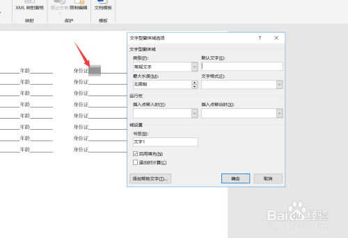 插入文字型窗体之后,我们双击这个窗体就可以进入设置页面。