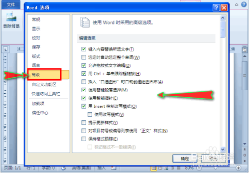 然后我们在“word选项”对话窗的左侧点击“高级”选项,此时右侧会呈现具体的内容。如图所示: