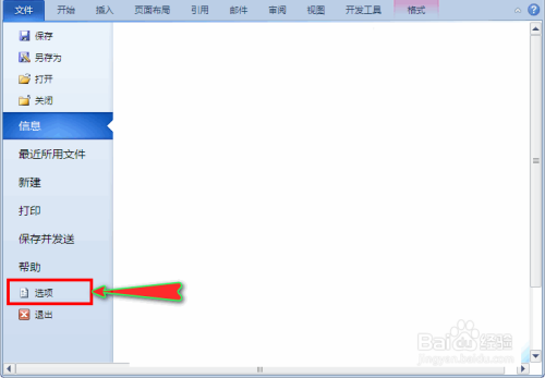 在“文件”选项扩展框中,我们点击“选项”,这时会弹出“word选项”对话窗。如图所示: