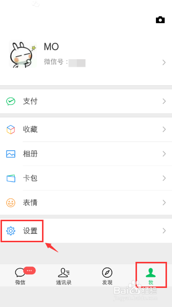 手机打开微信,在东西栏点击【我】,再点击【设置】。