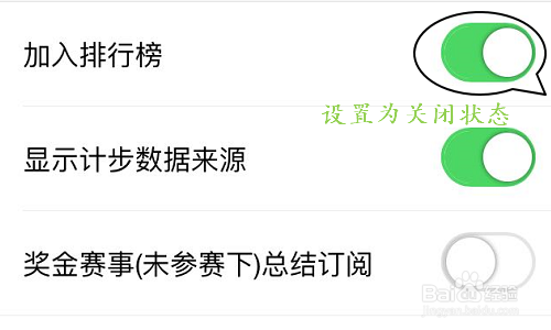 最后点击进入设置和办理界面,找到“插手排行榜”而且将右侧的开关设置为封闭,这样今后老友就看不到我们天天的步数了;