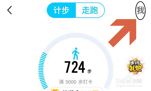 然后即可看到计步以及走跑的大要统计环境,同时该页面的右上角会有一项“我”,我们点击它;