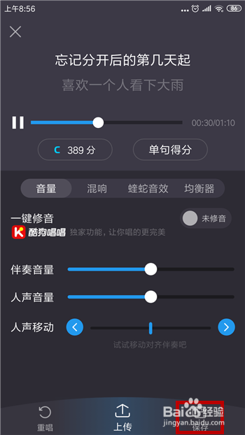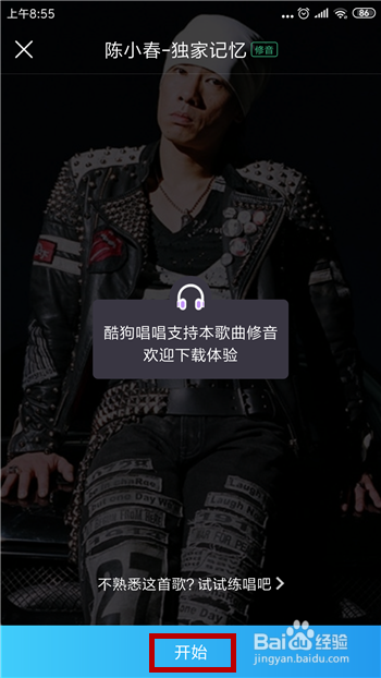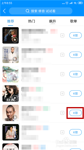 在歌曲后方点击【K歌】选项筹办起头K歌。