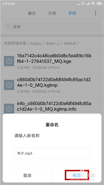 把我们的K歌的缓存后缀名改为【mp3】格局后点击【确定】,然后复制出来即可。