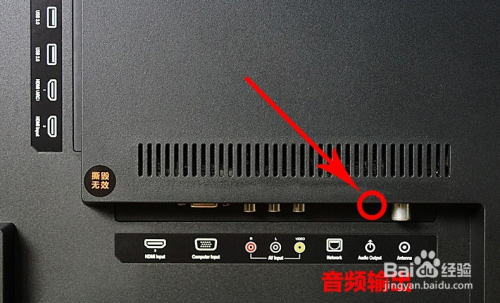 然后在电视后面找到音频输出/耳机孔/音视频输出/AV输出/数字音频输出等,此中一种接口