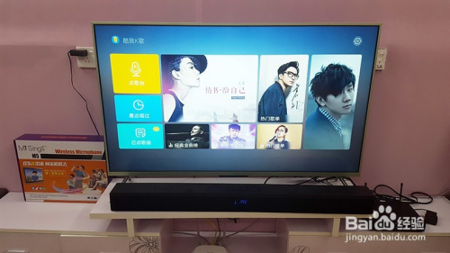 毗连好后,话筒声音跟电视声音都在音响播放了,就可以唱歌了