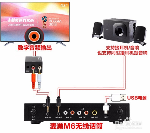 再用音频线毗连话筒本家儿机R+L OUT输出插孔,到音响输入(具体毗连线可按照音响输入插孔决议)