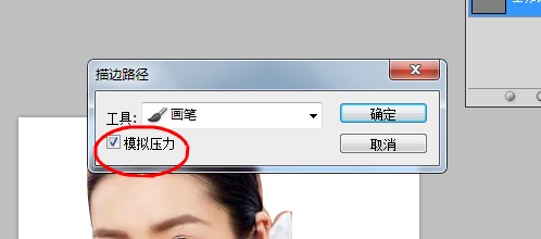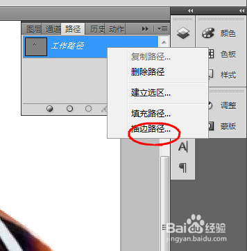 点击右边的路径东西,点击右鼠标右键呈现描边路径,鄙人面的设定压力前面画勾