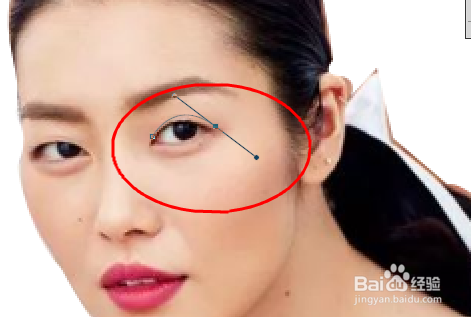 然后点击钢笔东西人物的眼皮稍微标的目的上一点点画一条弧线,这就是双眼皮线