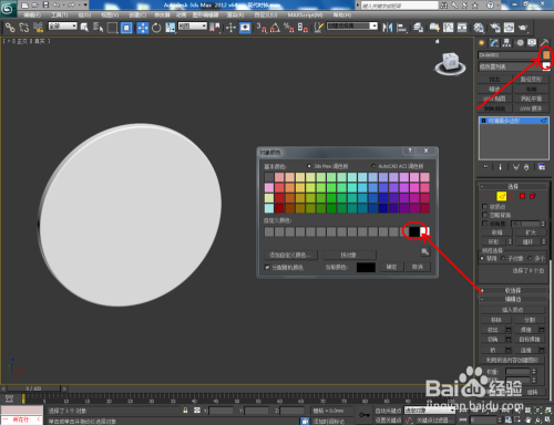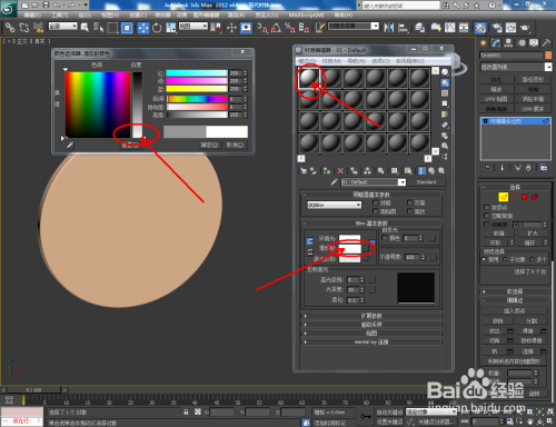 点击【材质编纂器】,弹出材质编纂器设置栏,按图示设置一个白色材质球并附加给模子。选中模子,点击【对象颜色】将模子的对象颜色设置为:黑色;