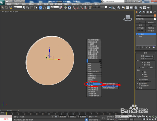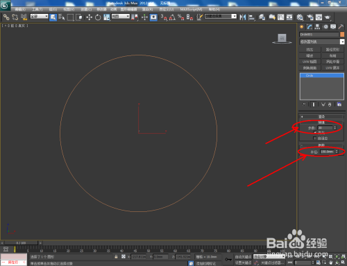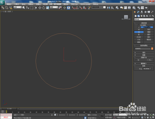 打开3Dmax2012软件,点击【建立】-【图形】-【圆形】,在作图区域绘制一个圆形图案,并按图示设置好圆形的各个参数;