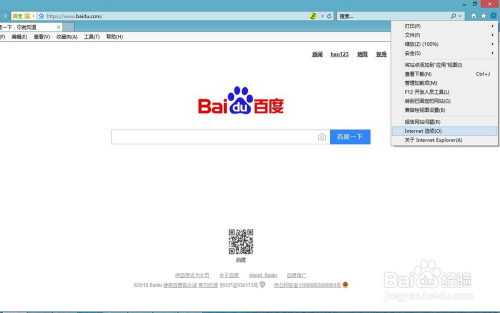 我们可以在打开页面在设置里点击“Intenet选项“,点击进去.