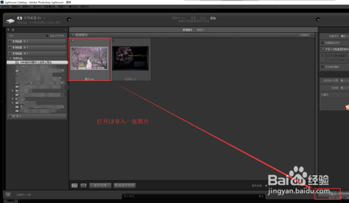 打开Adobe Lightroom软件,然后执行导入号令,选择一张图片导入到Lightroom软件中。