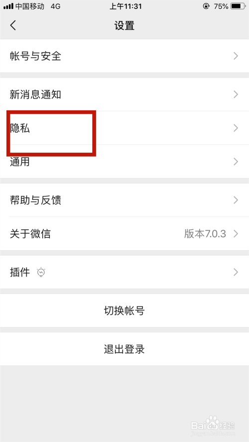 点击通用里的“隐私”