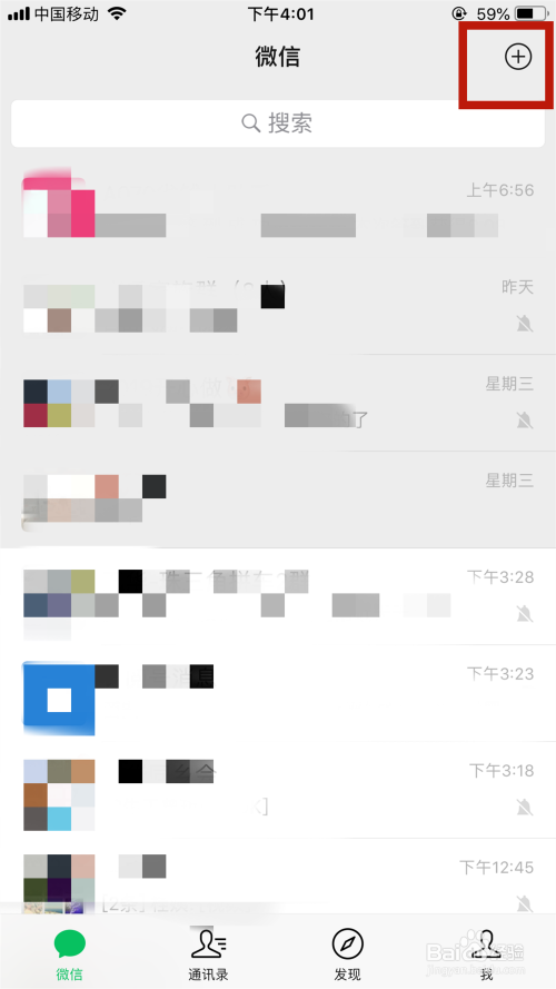 点击微信本家儿页右上方的“添加”符号