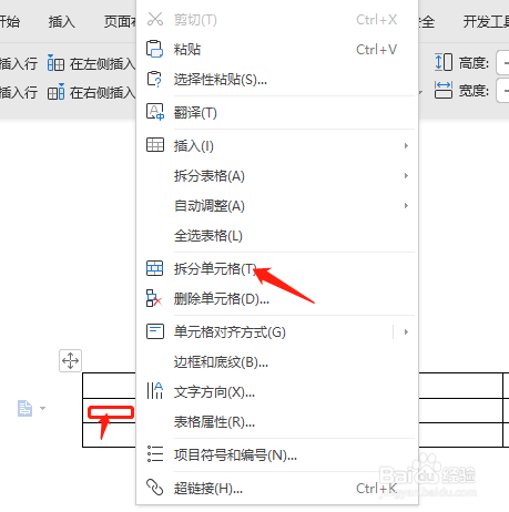 之后在wps上会看到我们适才插入的表格,光标定位到想要拆分的单位格: