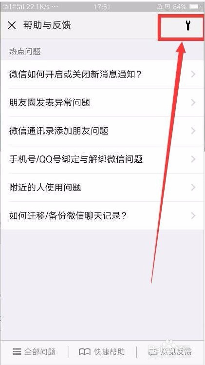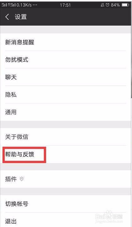 我们首先选择打开微信设置,点击“帮忙与反馈”;