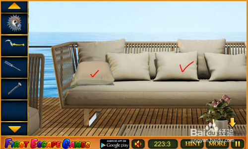 达到场景4,沙发上的两个靠枕可以弹击。