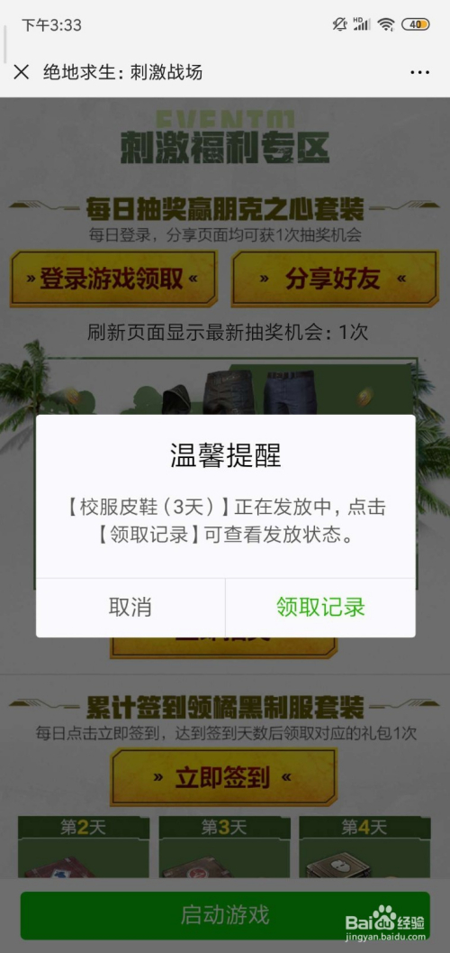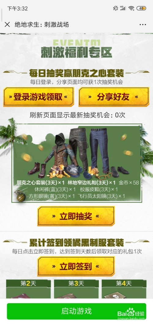 进入活动,我们下拉页面,点击“登录游戏领取”;