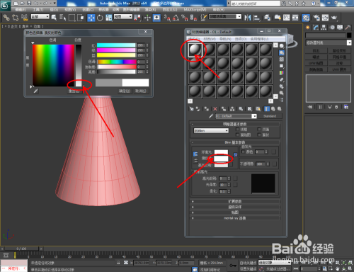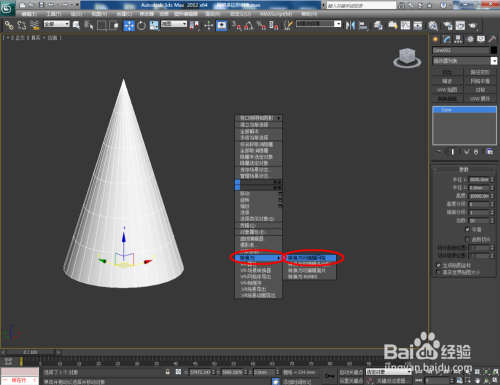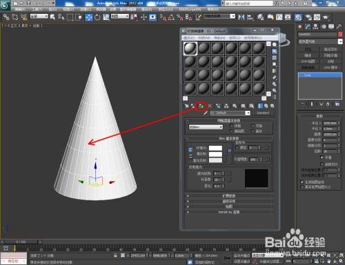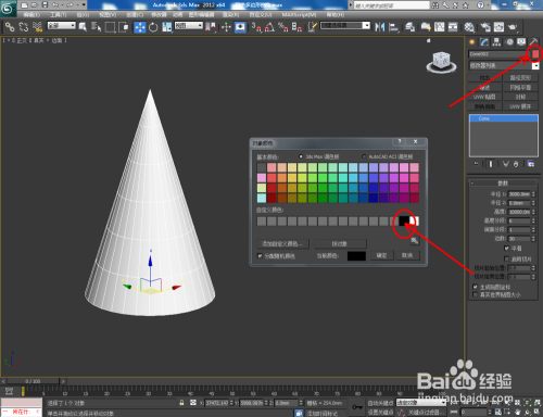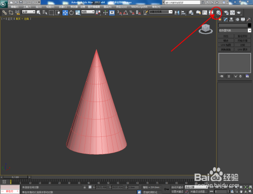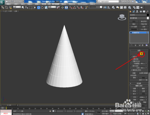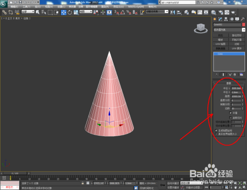 打开3Dmax2012软件,点击【建立】-【几何体】-【圆锥体】,在作图区域绘制一个圆锥体模子,并按图示设置好圆锥体的各个参数;