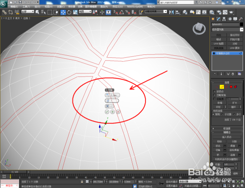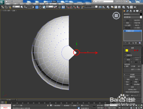 点击右边工作区中的【面】图标,按图示选中模子上一半的面并将其删除。点击【极点】图标,选中模子上的极点并进行移动(如图所示);