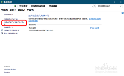 此时打开一个节制面板 > 所有节制面板 > 电源选项 窗口,在窗口左侧我们可以看到【选择封闭笔记本计较机盖的功能】,点击此项;