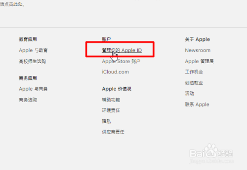 然后在最下方页面找到【账户-办理你的Apple ID】,点击进入