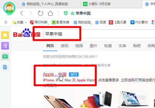 首先打开百度搜刮,然后在搜刮栏中输入【苹果中国】,找到苹果公司在中国的官网,点击进入官网