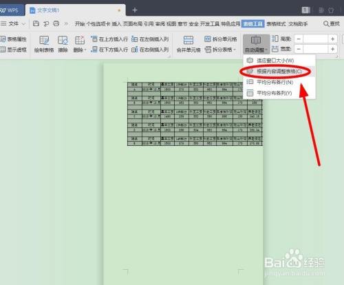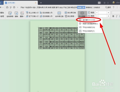 在“表格东西”选项卡下找到“主动调整”功能选项单击