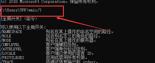 然后再号令行输入wmic/?,然后回车