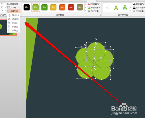 我们在外形归并功能中,点击结合的按钮。