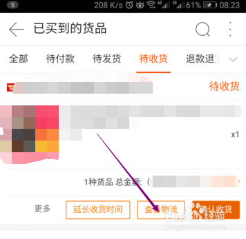 若是是采办了多件商品,就选择你要查看的待收货商品。