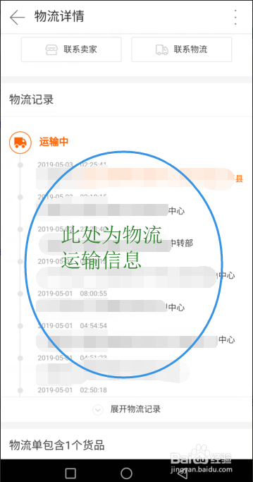这个时辰你采办的货色物流信息就会显示出来,也就是物流记实。