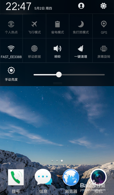 从上往下滑动页面,呈现通知栏。