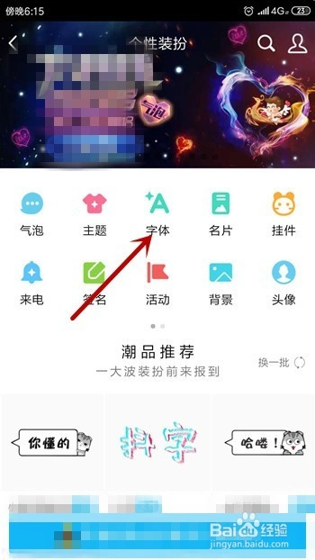 个性装扮的分类中有一个就是【字体】,点击打开【字体】设置。