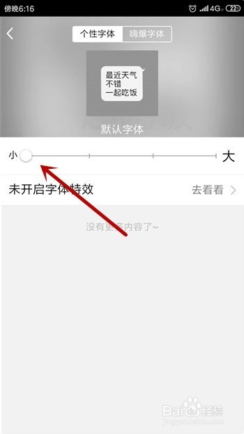 然后可看到字体大小的调整,拖动进度条可完当作字体大小的设置。
