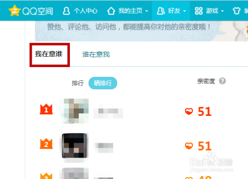 然后在老友首页中点击【我在意谁】,下方是我们的QQ老友,鼠标移兰交友头像处。