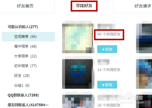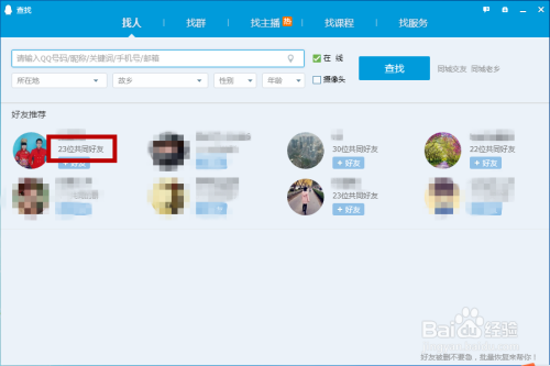 进入到查找界面后就会保举一些有配合老友的QQ给我们,可以看到我们和该QQ有几多个配合老友。