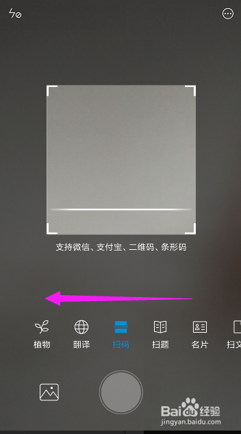 点击进入,来到扫一扫的页面,摆布滑动下面的选项,如图所示