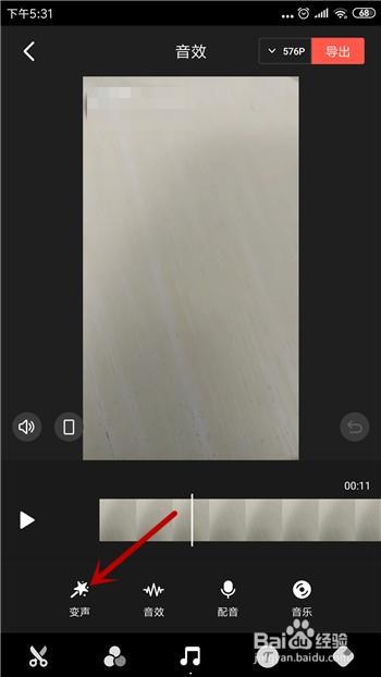 然后在音乐的上方可看到【变声】的功能,点击利用这个功能。