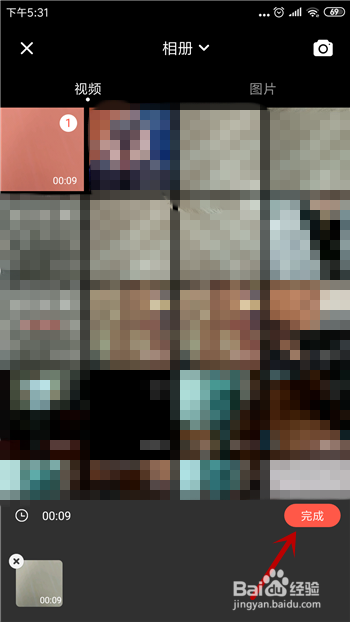 接着在手机相册里找到适才保留的抖音视频,选择视频后点击【完当作】。