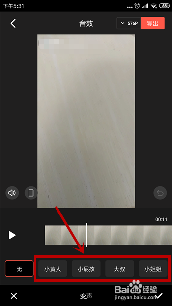完当作变声的设置后点击右上角的【导出】选项,选择合适的清楚度导出。