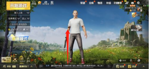 在吃鸡游戏界面中,从屏幕下方(有一条横线的何处)往上划;
