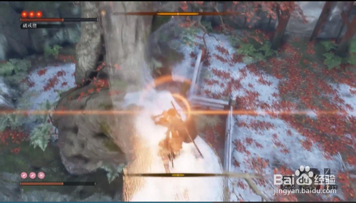 好比鄙人图位置 的树上boss只会跳砍 只要不竭完美格挡 就可以触发忍杀
